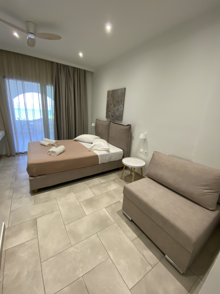 Υπάρχουν 2 διαμερίσματα στο ισόγειο από 30 τ.μ. το καθένα και όλα έχουν βεράντα με θέα στον κήπο και στην θάλασσα.