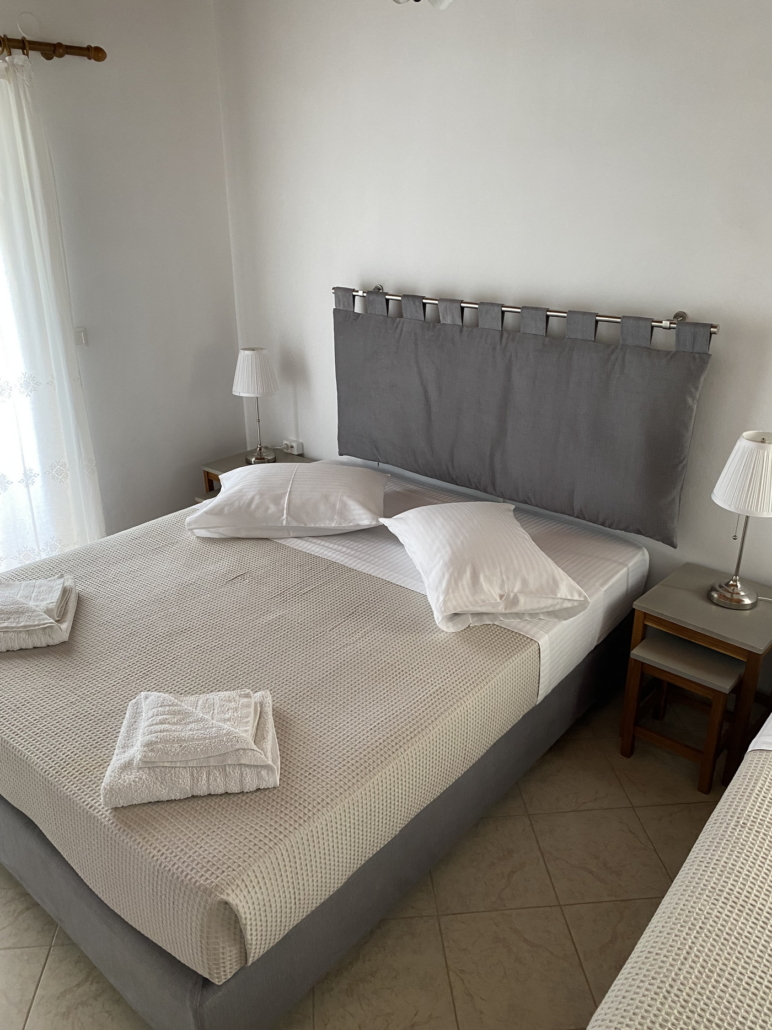 The apartments are open space, with 1 double and 1 single bed, wardrobe, TV, wifi, fully equipped kitchen (fridge, kitchen, table, coffee maker, toaster) and a bathroom with shower.
